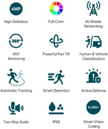 Vynikajúci 4G displej v plnej farbe s celodenným sledovaním, bez ohľadu na tmu. Vďaka jednoduchej inštalácii a pokrytiu 360° je táto kamera ideálnym riešením pre monitorovanie bez pripojenia k internetu.