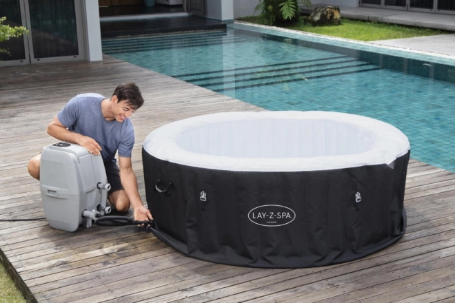 Model LAY-Z-SPA Miami AirJet premení váš balkón, terasu či záhradu na súkromné SPA. Kruhový tvar a čierne prevedenie pôsobí elegantne, zatiaľ čo 120 trysiek AirJet vytvára tisíce teplých bubliniek, ktoré jemne masírujú a uvoľňujú svaly. Multifunkčné čerpadlo zabezpečuje nafukovanie, filtráciu aj ohrev v jednom.