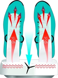 Multi Dryer Ozone Pro kombinuje účinné sušenie s pokročilou dezinfekciou ozónom O3. Ozón preniká do vnútorných vrstiev obuvi, kde eliminuje až 99,7 % plesní a stovky druhov baktérií, ktoré spôsobujú zápach a kožné ťažkosti. Prúd teplého vzduchu a integrovaný ventilátor zároveň urýchľujú schnutie a šetrne sa starajú o materiály.