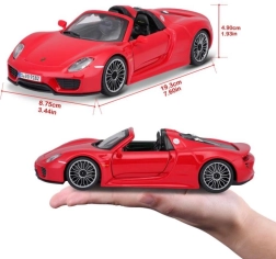 Každý prvok modelu Bburago Porsche 918 Spyder je starostlivo spracovaný, aby sa čo najviac priblížil skutočnému vozidlu. Od vetracích otvorov až po kolesá s realistickými pneumatikami.<4p> <4div> <4div>