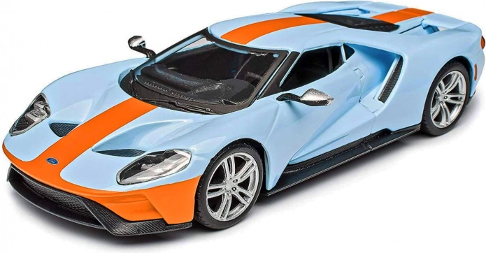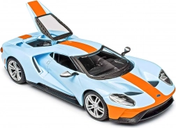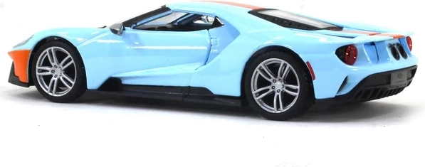 Tento detailne spracovaný model Bburago prináša do vašej zbierky legendárny Ford GT v atraktívnej kombinácii svetlomodrej farby s oranžovými pretekárskymi pruhmi. Vďaka kvalitnému die-cast kovu a presným proporciám pôsobí model veľmi realisticky a zvýrazní každú poličku či vitrínu.