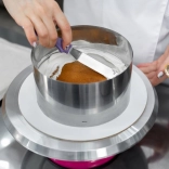 Profesionálny ráfik na torty z nehrdzavejúcej ocele s plynulou reguláciou priemeru 16–30 cm a extra výškou 20 cm. Vďaka pevným sponám je stabilný, tesný a vhodný na vysoké viacvrstvové torty. Ľahko sa nastavuje bez náradia, hodí sa do každej rúry a možno ho umývať v umývačke.
