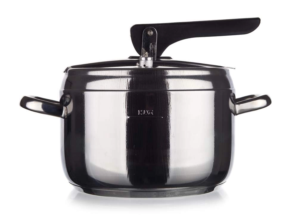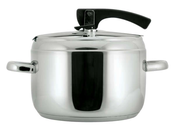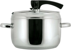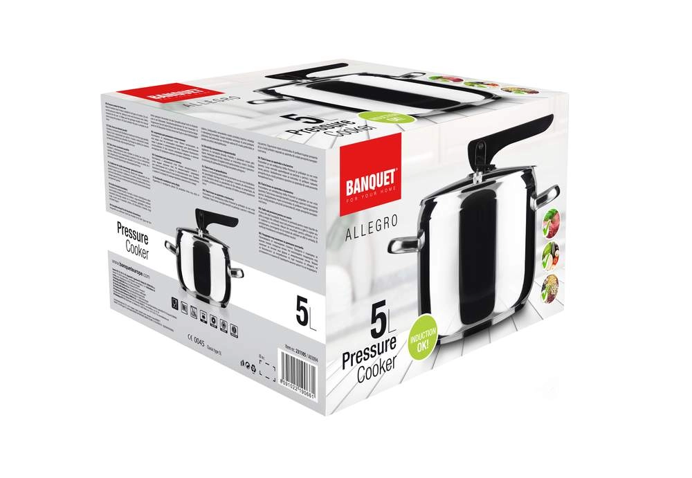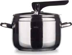 5 l nerezový tlakový hrniec s pákovým zámkom, priemer 20,8 cm, výška 15 cm, nehrdzavejúca oceľ 18/0, hrúbka steny 0,6 mm, 2 ventily, silné sendvičové dno. Veko obsahuje dva ventily, hlavný prevádzkový ventil a pomocný / bezpečnostný ventil. Tlakový hrniec je určený na rýchlu prípravu pokrmov a možno ho používať na všetkých typoch varných dosiek vrátane indukcie. Pokrievka tlakového hrnca obsahuje hlavný prevádzkový ventil a pomocný ventil pre prípad upchatia prevádzkového ventilu, vďaka čomu je hrniec mimoriadne bezpečný! Tlakový hrniec je vyrobený z odolného materiálu, má silné dno a možno ho používať na všetkých typoch varných dosiek.