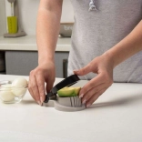 Vďaka veľkosti približne 12 × 5,8 cm sa krájač ľahko skladuje a máte ho vždy po ruke.