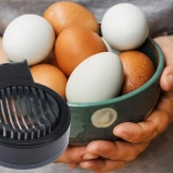 Robustné, avšak ľahké plastové telo sa ľahko udržiava a vďaka kompaktným rozmerom ho uložíte aj do malej zásuvky. Ovládanie je intuitívne: vajíčko položíte do lôžka a veko s drôtikmi jemne stlačíte.
