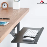 Robustná kovová konštrukcia s kvalitnými plastovými prvkami zabezpečuje hladký posuv, stabilitu a dlhú životnosť. Po práci možno policu úplne zasunúť pod dosku a uvoľniť tak pracovnú plochu. Ideálne pre domácu kanceláriu, open space aj herné stoly.