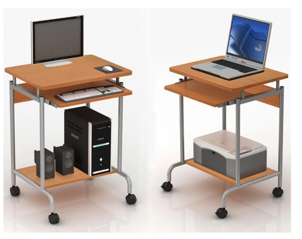 Kompaktný počítačový stôl je ideálny do malých priestorov – perfektný pre notebook alebo menšie PC. Ponúka výsuvnú policu na klávesnicu, hlavnú pracovnú plochu, spodnú úložnú policu pre PC skrinku či tlačiareň a stabilnú kovovú konštrukciu v kombinácii s doskami z MDF v dekore buk.