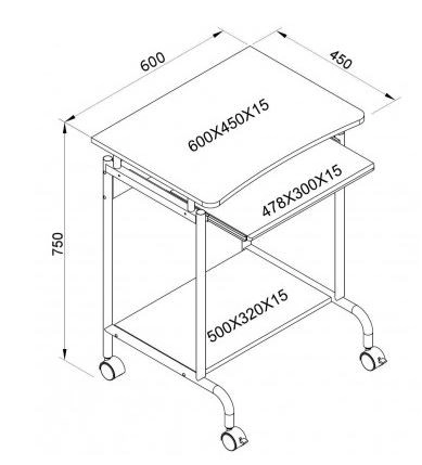 - Spodná priestranná polica (50 × 32 cm) na PC skrinku, tlačiareň alebo ďalšie zariadenia.