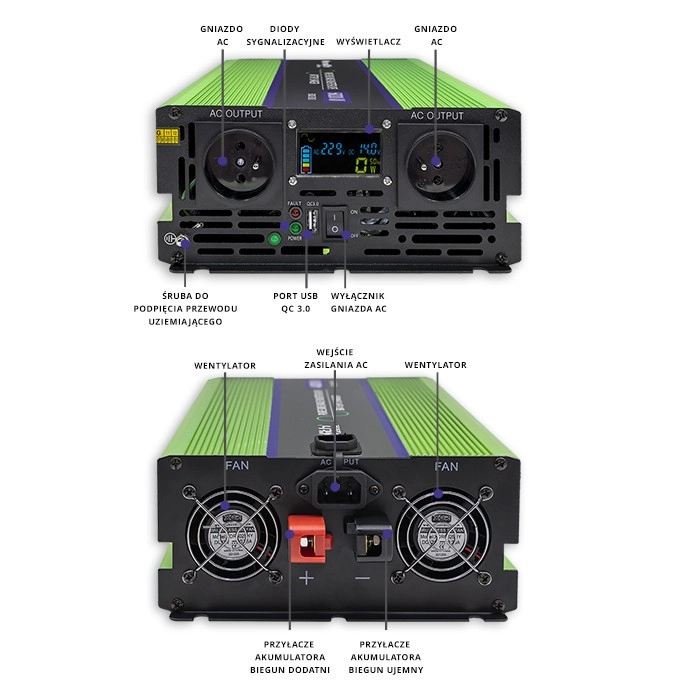 Vďaka vybaveniu ako sú AC zásuvky, USB port a LCD displej, je tento konvertor skvelým pomocníkom pre napájanie i nabíjanie vašich zariadení.