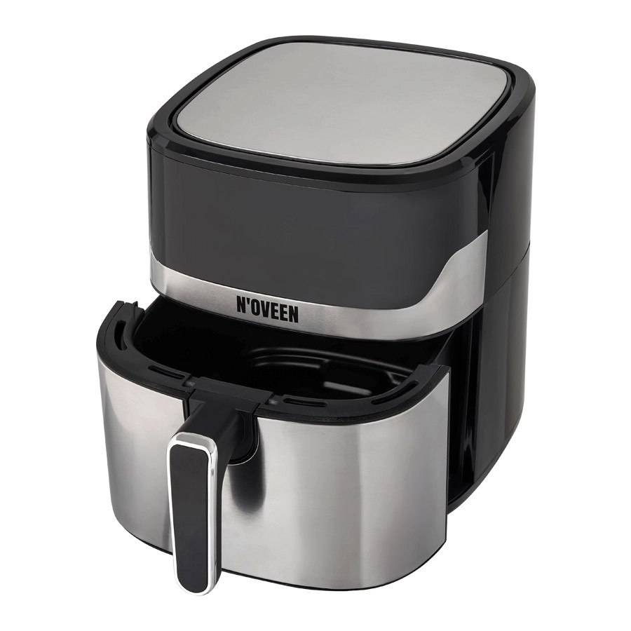 S horúcovzdušnou fritézou N'OVEEN AF550 6,5 l pripravíte chrumkavé a zdravé jedlá s minimom oleja. Ponúka 8 automatických programov (steak, kura, ryby, morské plody, hranolčeky, zelenina, dezerty, pizza), technológiu Rapid Air pre rovnomernú cirkuláciu horúceho vzduchu a nepriľnavý teflónový kôš pre jednoduché čistenie. Ideálna voľba na rýchle, chutné a nízkokalorické varenie pre celú rodinu.