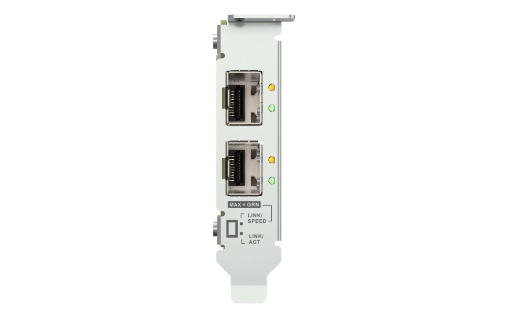 Karta podporuje PCIe Gen3 x8 s kompatibilitou pre PCIe Gen4, čo zaručuje stabilnú priepustnosť pre náročné prenosy médií, zálohovanie aj aplikácie s nízkou latenciou. Funkcia SR-IOV zlepšuje výkon virtuálnych strojov a uľahčuje škálovanie vo virtualizovanej infraštruktúre.