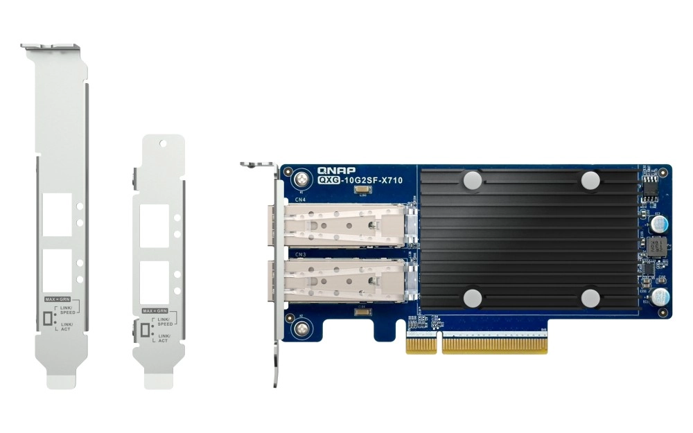 QNAP QXG-10G2SF-X710 je profesionálna sieťová karta s dvoma portami SFP+ (10G/1G), ktorá prináša vysokorýchlostnú 10GbE konektivitu do pracovných staníc aj serverov NAS. Vďaka veľkému pasívnemu chladiču beží úplne bez ventilátora a je tak vhodná do prostredí citlivých na hluk.