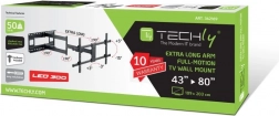 Nástenný držiak Techly bol navrhnutý pre optimalizáciu vášho zážitku zo sledovania televízie. Vďaka dlhému ramenu s dosahom až 1015 mm môžete televízor nastaviť presne podľa vašich potrieb, čo vám umožňuje maximálne pohodlie a flexibilitu. Držiak ponúka široké možnosti nastavenia, ako je náklon v rozsahu +5° až -15°, otáčanie o ±90° alebo úpravu vzdialenosti od steny od 82 mm do 1015 mm.