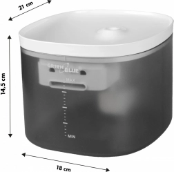 Moderný, nenápadný dizajn v sivej farbe ladí s väčšinou interiérov a fontána je zároveň jednoduchá na údržbu – jednotlivé časti jednoducho rozložíte a vyčistíte. Veľký objem výrazne znižuje frekvenciu dopĺňania, čo oceníte najmä pri dlhších odchodoch z domu.