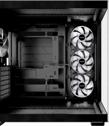 Veľké priehľadné panely predné a bočné poskytujú skvelý panoramatický výhľad na všetky komponenty počítača.