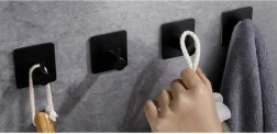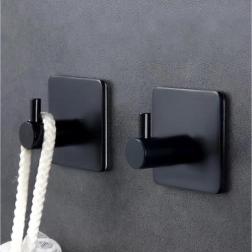 Moderné samolepiace háčiky RUHHY kombinujú pevnú nehrdzavejúcu oceľ a odolné práškové lakovanie v elegantnom matne čiernom vyhotovení. Vďaka silnej montážnej páske držia spoľahlivo aj v prostredí so zvýšenou vlhkosťou a zvládnu uniesť až 3 kg na jeden háčik. Praktické háčikové zakončenie zabraňuje skĺznutiu aj ťažkých a mokrých uterákov.