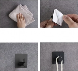 Montáž je rýchla a čistá – bez vŕtania a bez náradia. Pre maximálnu priľnavosť stačí očistiť povrch (napr. liehom), zohriať lepiaci podklad fénom a pevne pritlačiť. V prípade potreby možno háčik sňať bez poškodenia podkladu a bez zanechania stôp.