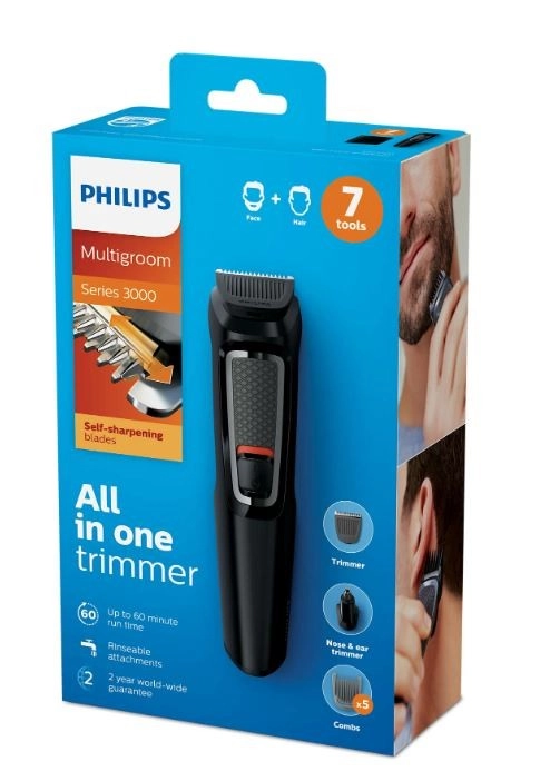 Univerzálny zastrihávač PHILIPS Series 3000 ponúka 7 nadstavcov na úpravu fúzov, vlasov aj chĺpkov v nose a ušiach. Vďaka samoostriacim oceľovým britom si užijete precízny strih po dlhé roky, až 60 minút bezdrôtovej prevádzky a jednoduché čistenie vďaka umývateľným nadstavcom. Súčasťou je aj praktické puzdro na prenášanie a uloženie.