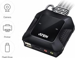 Prepínač KVM umožňuje jednoduché prepínanie medzi dvoma počítačmi pomocou jediného USB a HDMI pripojenia. Vychutnajte si živú kvalitu obrazu 4K a zefektívnite svoju pracovnú plochu s menším množstvom káblov.