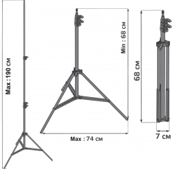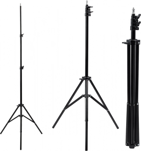 Vysokokvalitný profesionálny statív určený na montáž kruhových lámp. Je kompatibilný s 12" lampami Maclean Energy MCE612 a MCE612B. Maximálna výška statívu je 190 cm, čo umožňuje robiť fotografie aj postojačky. Vďaka svojej nízkej hmotnosti a možnosti rýchleho zloženia je statív ľahko prenosný.