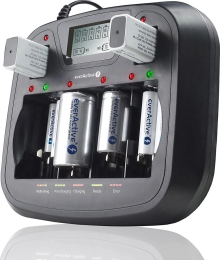 Hľadáte nabíjačku, ktorá si poradí s väčšinou bežných aj väčších článkov a umožní nabíjať aj nepárny počet batérií? EVERACTIVE univerzálna procesorová nabíjačka ponúka 8 plne nezávislých kanálov s inteligentným riadením. Vďaka funkciám obnovenia (refresh) a vybíjania dokáže zlepšiť kondíciu vašich Ni‑MH akumulátorov a predĺžiť ich životnosť.