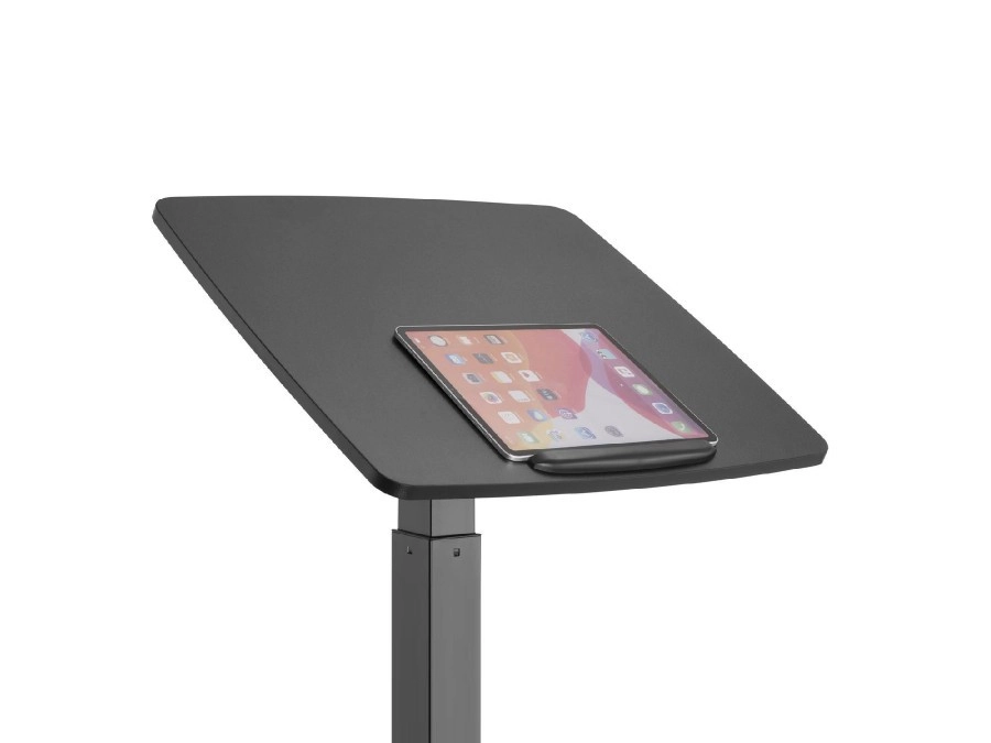 Pracovná doska s možnosťou naklopenia poskytuje pohodlný uhol na písanie, čítanie, skicovanie aj prácu na tablete. Robustný oceľový rám a kvalitné kolieska so zámkom zaručujú stabilitu a bezpečné používanie pri presúvaní medzi miestnosťami.