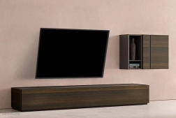 TV prilieha k stene a pôsobí elegantne a úsporne. Nízka vzdialenosť zároveň zachováva priestor a čistý vzhľad interiéru.