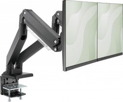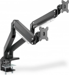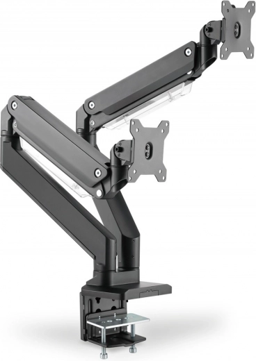 Ergonomické nastavenie polohy monitora zaisťuje pohodlie a efektivitu. Tento držiak na dva monitory sa inštaluje jednoducho pomocou svorkového upevnenia pre monitory až do 35" a hmotnosti do 15 kg každý.