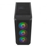 Tri 120 mm RGB ventilátory vpredu + jeden vzadu, mesh čelo a odvetraný top pre nízke teploty aj pri záťaži. Možnosť inštalácie až 8 ventilátorov.