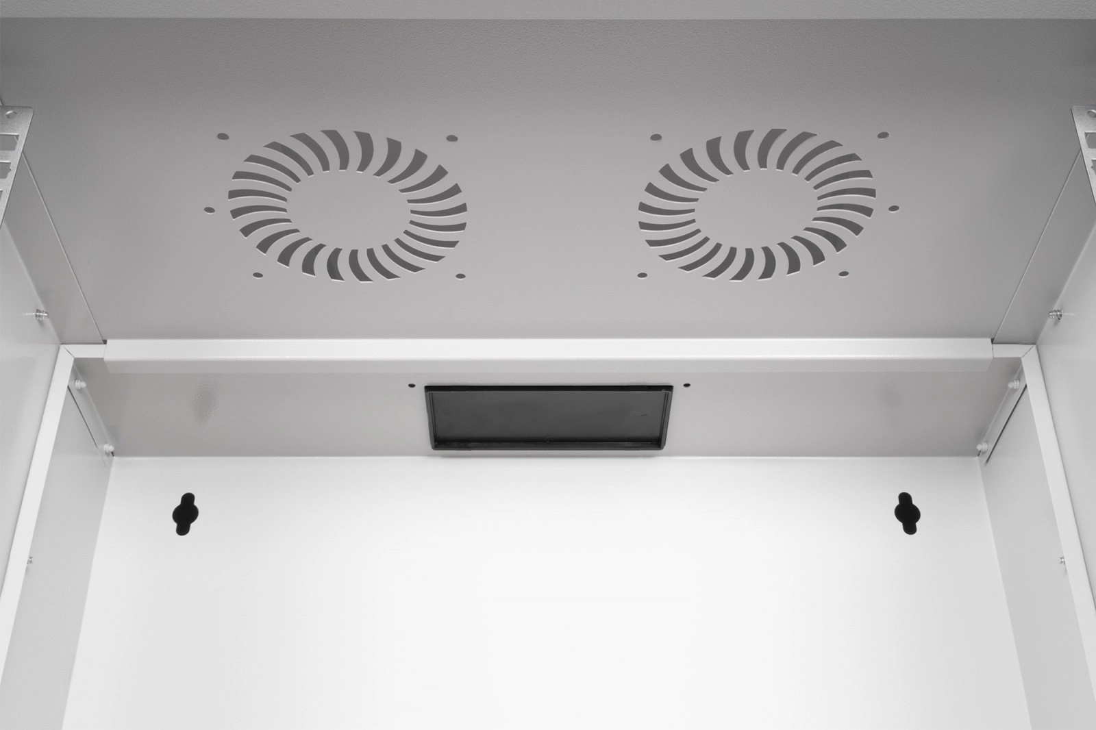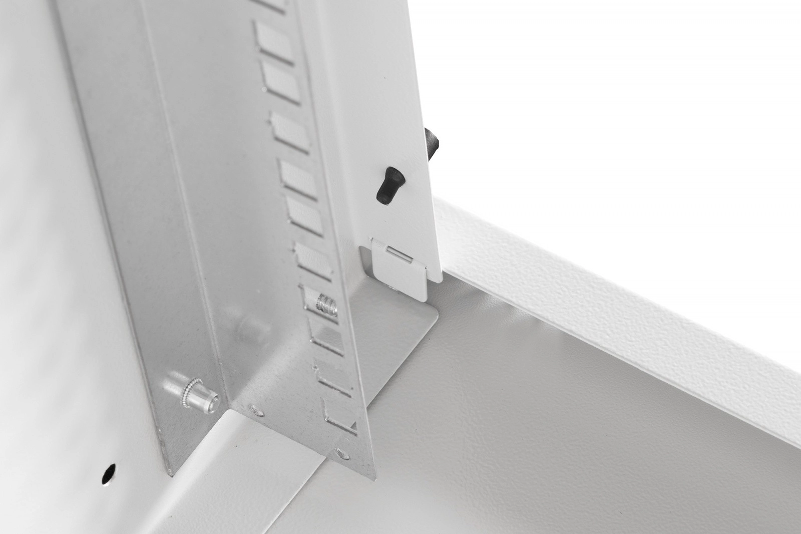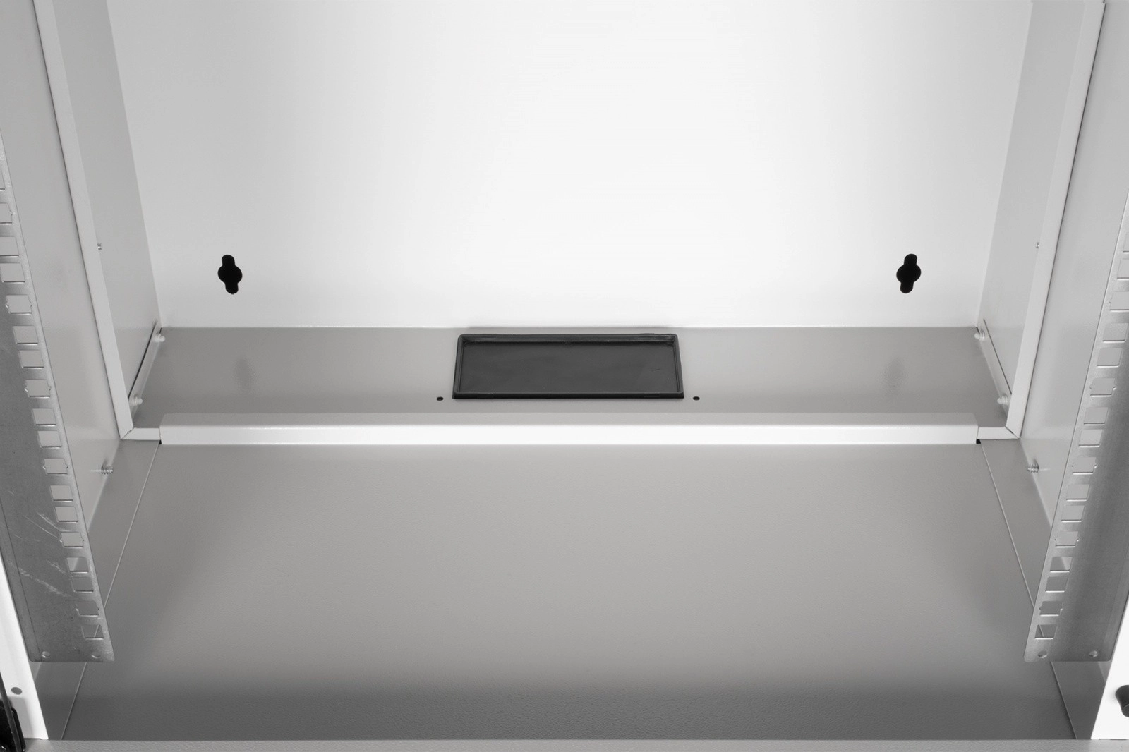 Skriňa je dodávaná v demonte v plochom balení na úsporu miesta a nákladov na dopravu. Vďaka prehľadnému návodu je inštalácia rýchla a zvládnete ju v niekoľkých krokoch. Predné 19" profily (483 mm) sú pozinkované a ich hĺbku možno plynule nastaviť pre presné usadenie zariadení. Horný priechod s kefovou lištou a spodná plastová priechodka uľahčujú čisté vedenie kabeláže, zatiaľ čo vetracia perforácia podporuje aktívne aj pasívne chladenie.
