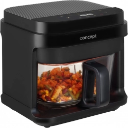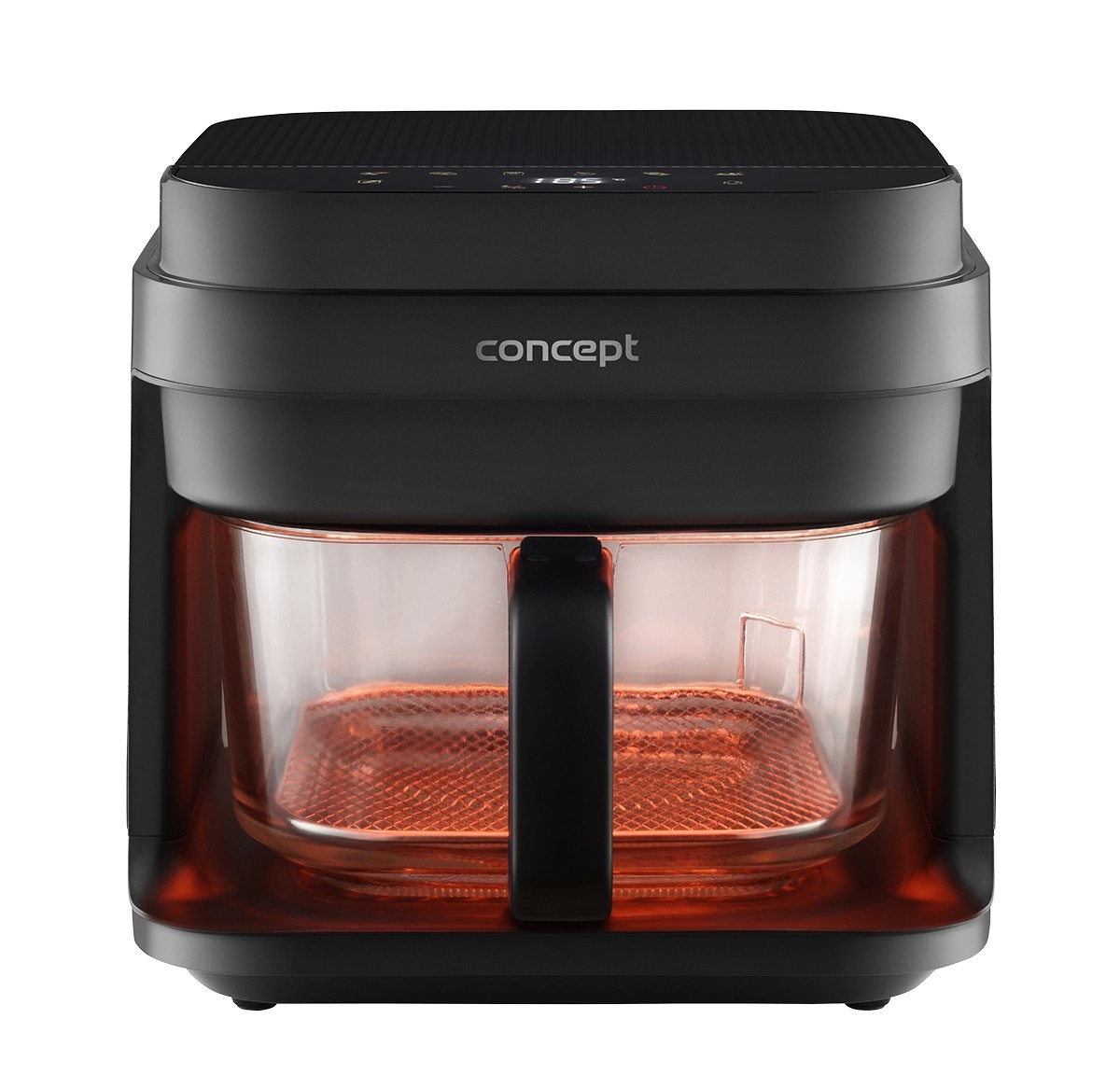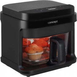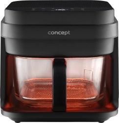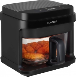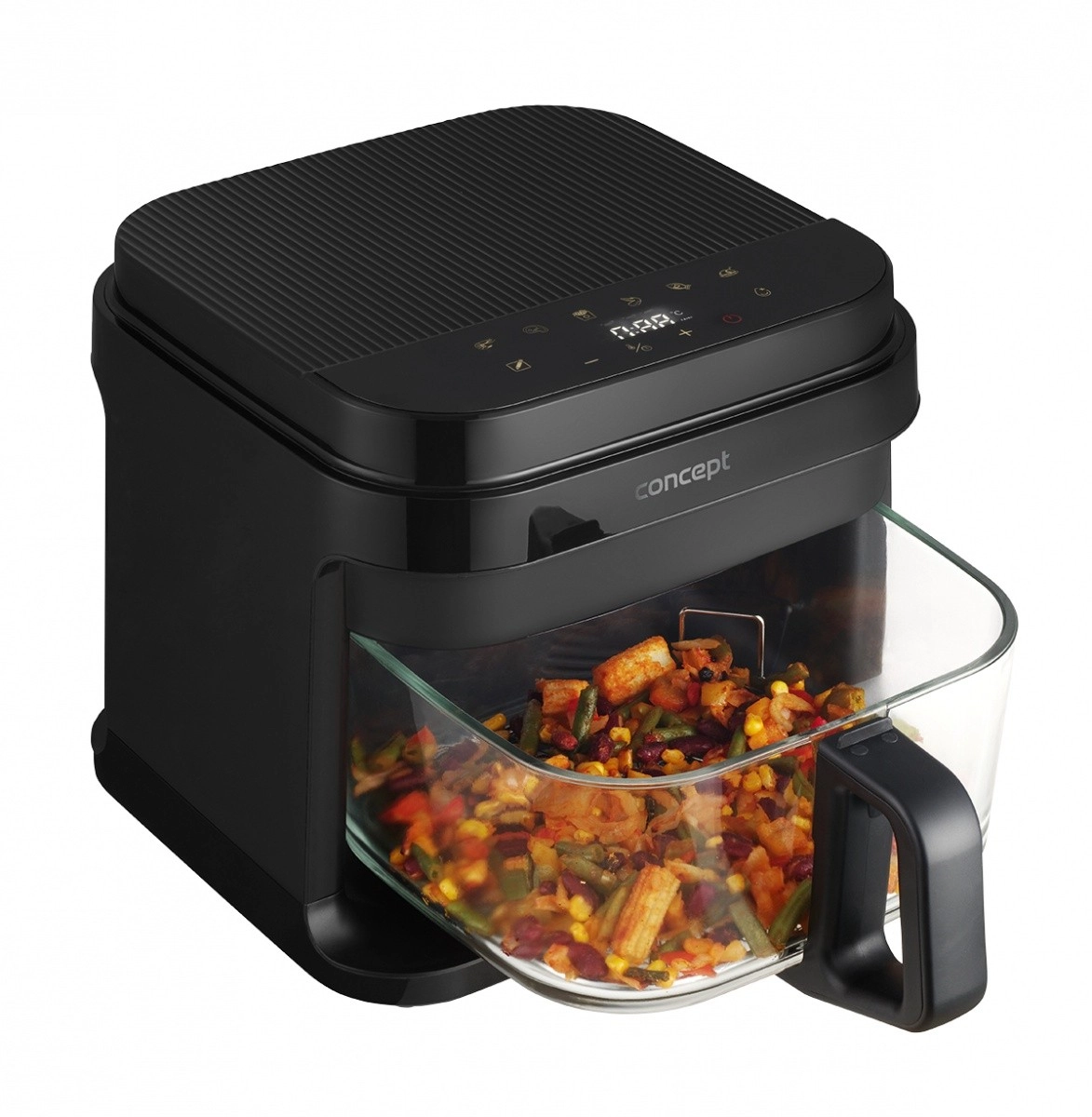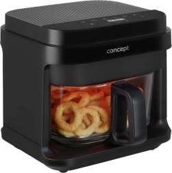 Fritéza Concept FR5500 je praktická voľba na každodenné varenie. Ponúka pečenie, grilovanie aj vyprážanie s minimom tuku, a to podstatne rýchlejšie než v klasickej rúre. Transparentný sklenený kôš je odolný proti usadeninám, zápachu aj poškriabaniu a umožní kontrolu pokrmov bez otvárania.