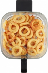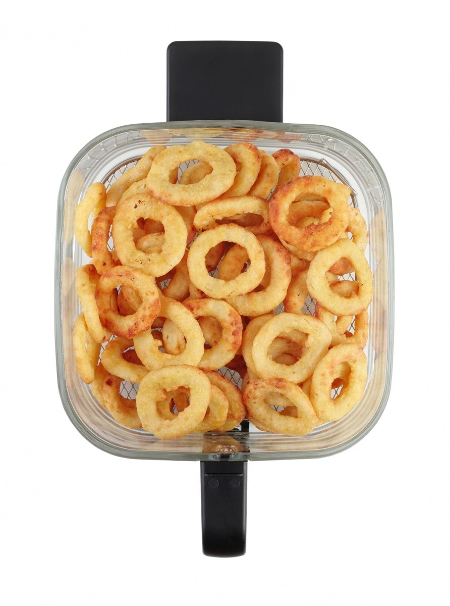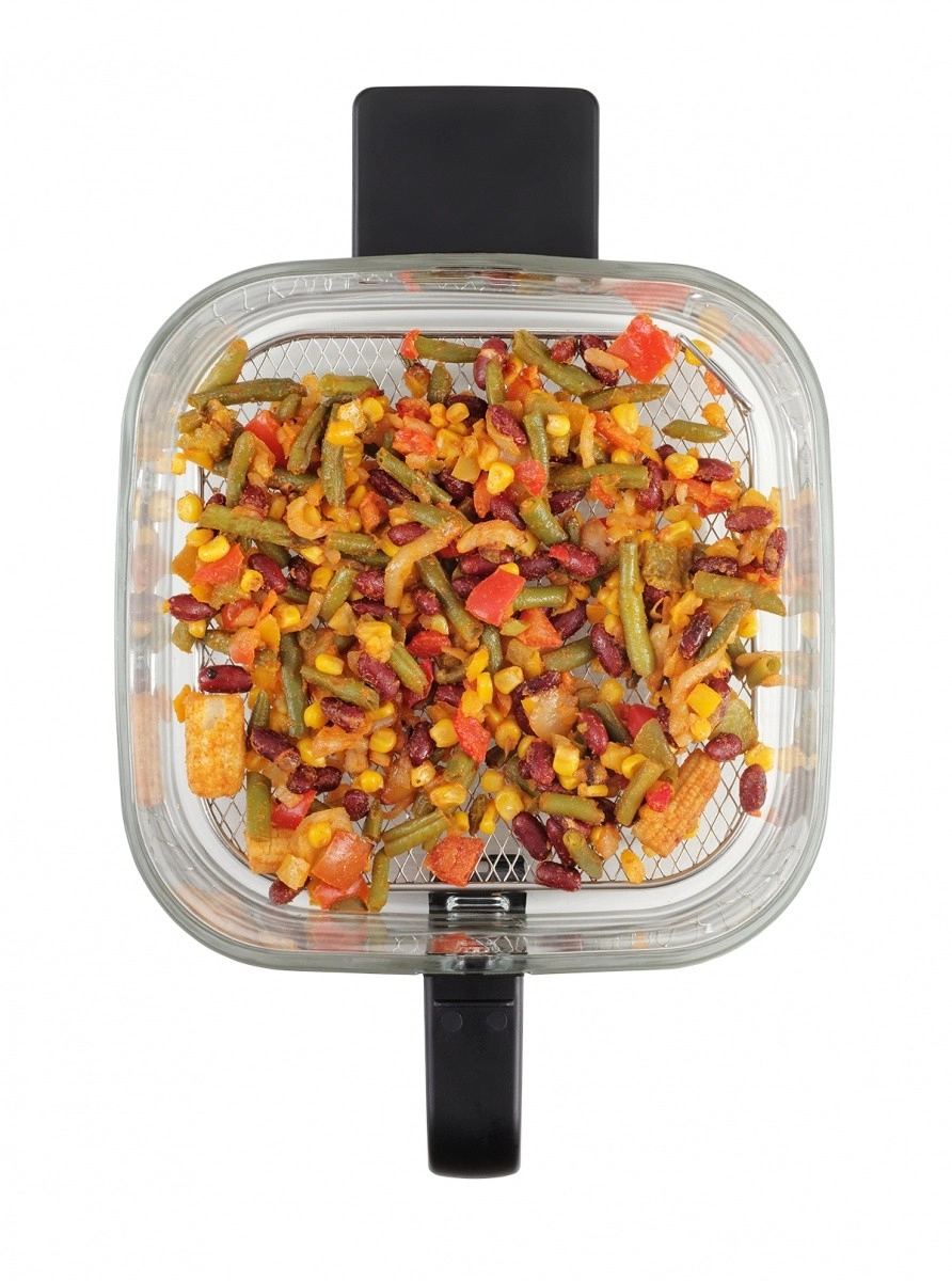 Odolný sklenený kôš sa ľahko čistí, nenasáva pachy a neškrabe sa. Vďaka priehľadnému prevedeniu vždy vidíte stav pokrmu bez otvárania fritézy.