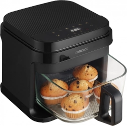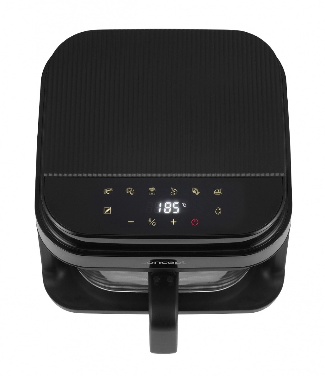 Ovládanie je jednoduché vďaka digitálnemu dotykovému panelu so 7 prednastavenými programami (hranolky, krídelká, steak, ryba, krevety, kura, rozmrazovanie) a manuálnemu režimu pre vlastné nastavenie teploty a času. Bezpečnú prevádzku zabezpečuje tepelná poistka a protišmykové nožičky.