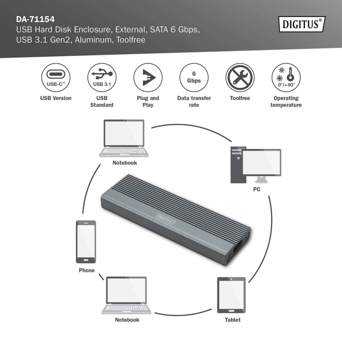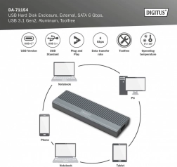 Inštalácia je otázkou okamihu – bez skrutiek a náradia. Podporované sú obľúbené veľkosti M.2 (2230/2242/2260/2280), takže ľahko využijete väčšinu SATA M.2 SSD až do 8 TB. Vďaka spätnej kompatibilite s USB 3.1/3.0/2.0/1.1 pripojíte box takmer k akémukoľvek zariadeniu.
