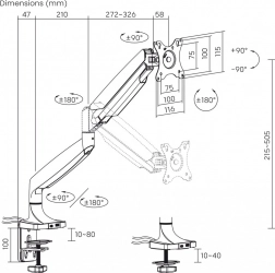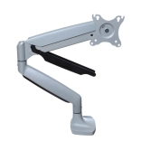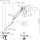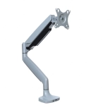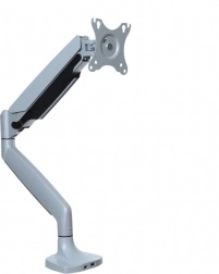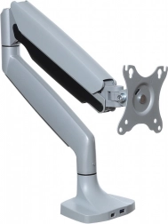 Plynový stolný držiak na monitor je navrhnutý tak, aby spĺňal potreby pre väčšie a ťažšie monitory, vrátane zakrivených modelov. Umožňuje ľahko upraviť uhol a polohu displeja bez potreby náradia. K dispozícii je systém na skrytie káblov a zabraňuje nechcenému posunu monitora.