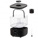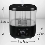 Intuitívny LED displej s dotykovými tlačidlami uľahčí nastavenie požadovanej úrovne vlhkosti aj časovača. Praktické plnenie zhora šetrí čas pri dopĺňaní vody a nočný režim zaistí nerušený spánok vďaka veľmi tichému chodu. Bezpečnosť stráži čidlo nedostatku vody, ktoré zariadenie automaticky vypne.