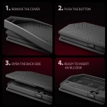 - Univerzálna podpora M.2 NVMe aj SATA (M‑key / B+M‑key), dĺžky 2230/2242/2260/2280.