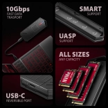 - Rýchle prenosy až 10 Gb/s, podpora UASP, TRIM, S.M.A.R.T., bootovanie.