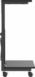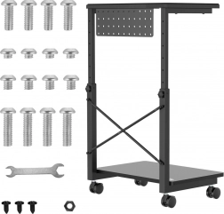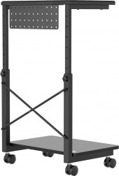 Tento pojazdný stojan je ideálny pre tých, ktorí potrebujú často meniť polohu počítača alebo majú obmedzený pracovný priestor. S možnosťou nastavenia výšky od 550 do 850 mm ho možno prispôsobiť rôznym typom stolov a pracovných miest, čo výrazne zvyšuje jeho flexibilitu. Navyše, praktická polička ponúka možnosť uloženia príslušenstva alebo môže slúžiť ako podložka pre notebook.