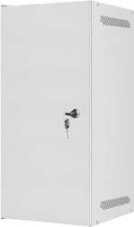 Skriňa je vybavená prednými dvierkami s otočným zámkom, čo zaisťuje bezpečnosť uložených zariadení.