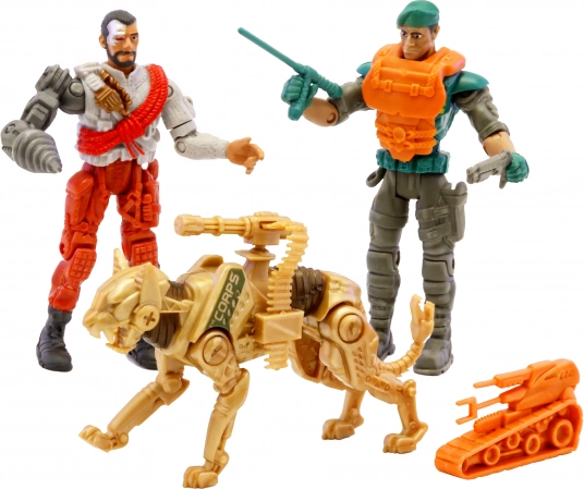 Tento unikátny set z rady The Corps ponúka tri rôzne varianty kombinácií so zvieratami: vlk, mačka, alebo dino. Vojaci sú detailne spracovaní a vybavení zbraňami pre dokonalú hru na akčné bitky. Každé zviera má svoj špecifický vzhľad a charakter, ktorý oživí každú hru.