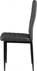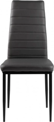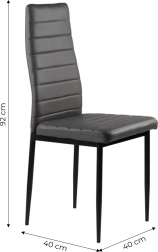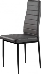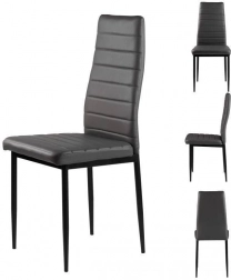 Sada štyroch stoličiek skvele dopĺňa váš jedálenský alebo obývací priestor vďaka modernému dizajnu s ergonomickými prvkami. Šedé čalúnenie z eko-kože s vodorovným prešívaním nielen dobre vyzerá, ale tiež poskytuje maximálne pohodlie pri sedení. Čierne kovové nohy zaručujú stabilitu a odolnosť.