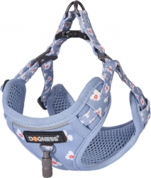 Ľahký, mäkko polstrovaný a nastaviteľný postroj sa ľahko prispôsobí telu psa. Bezpečné upevnenie zabezpečuje kovový krúžok a spoľahlivá karabína. Moderné svetlomodré prevedenie s jemným kvetinovým vzorom dodá vašim prechádzkam štýl.
