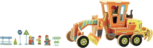 Drevená 3D skladačka – grejder (stavebný stroj)