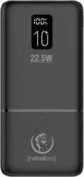 Powerbanka REBELTEC P10 kombinuje vysokú kapacitu 10 000 mAh s výkonom 22,5 W pre rýchle a stabilné dobíjanie. Vďaka viacerým portom zvládne súčasne napájať až tri zariadenia, zatiaľ čo LCD displej presne ukazuje zostávajúcu energiu aj aktuálny výstup.
