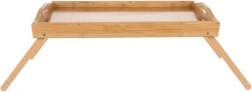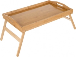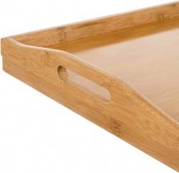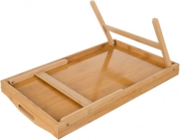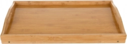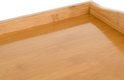 Veľká plocha so zvýšenými okrajmi poskytuje istotu pri servírovaní aj práci na notebooku. Konštrukcia z bambusu unesie až 5 kg a nepreberá neželané kývanie.
