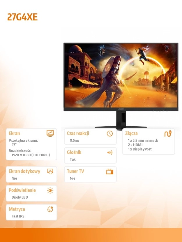 Vďaka dvojici vstupov HDMI a portu DisplayPort ľahko pripojíte PC aj konzoly. Moderný herný dizajn AOC s pevným stojanom zaisťuje stabilitu a štýl, vstavané reproduktory zase pohodlný zvuk pre hry, filmy aj prácu.