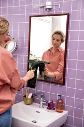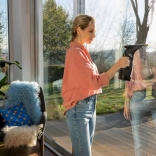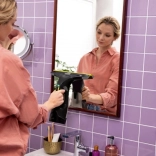 Kombinácia fľaše s rozprašovačom a mikrovláknovej podložky zaručuje účinné čistenie a v spojení s akumulátorovým napájaním dosahuje dokonale čisté okná.