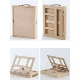 Kufrík je vyrobený z odolného dreva, ktorého súčasťou je stojan na jednoduché maľovanie. Všetky nástroje a pomôcky sú usporiadané tak, aby boli ľahko prístupné a dobre chránené počas prenášania.