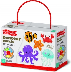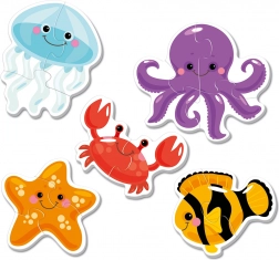 Objavte svet mora s obrysovými puzzle určenými pre najmenších. Každý z 5 obrázkov sa skladá len z 2–4 dielikov, takže deti rýchlo zažijú úspech a radosť zo skladania. Jasné farby a prehľadné tvary podporujú sústredenie a rozvoj zručností.
